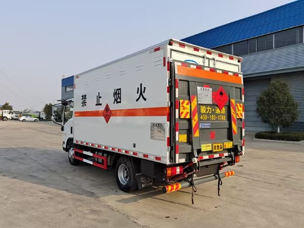 | 貨箱配置 | 廂體為雙層金屬骨架結(jié)構(gòu),外板采用冷軋鋼板,中間填充阻燃泡沫,內(nèi)飾為鋁板。底板為平板上鋪防靜電膠皮。廂內(nèi)兩側(cè)加裝固定貨物臥環(huán),門框帶防盜報警器,頂部帶煙霧報警器,廂體右側(cè)選裝側(cè)門,隨車配2個滅火器,危險標志牌,防火帽,危險品三角頂燈。(選裝瓦楞板貨箱) (尾部可選裝液壓升降尾板) | ||