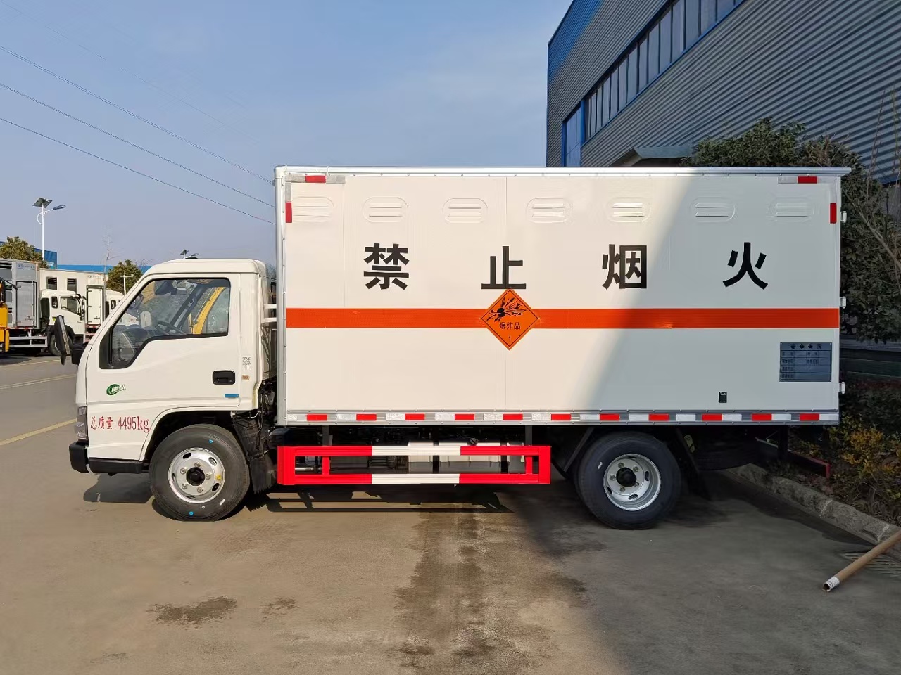 | 貨箱配置 | 廂體為雙層金屬骨架結(jié)構(gòu),外板采用冷軋鋼板,中間填充阻燃泡沫,內(nèi)飾為鋁板。底板為平板上鋪防靜電膠皮。廂內(nèi)兩側(cè)加裝固定貨物臥環(huán),門框帶防盜報(bào)警器,頂部帶煙霧報(bào)警器,廂體右側(cè)選裝側(cè)門,隨車配2個(gè)滅火器,危險(xiǎn)標(biāo)志牌,防火帽,危險(xiǎn)品三角頂燈。 | ||