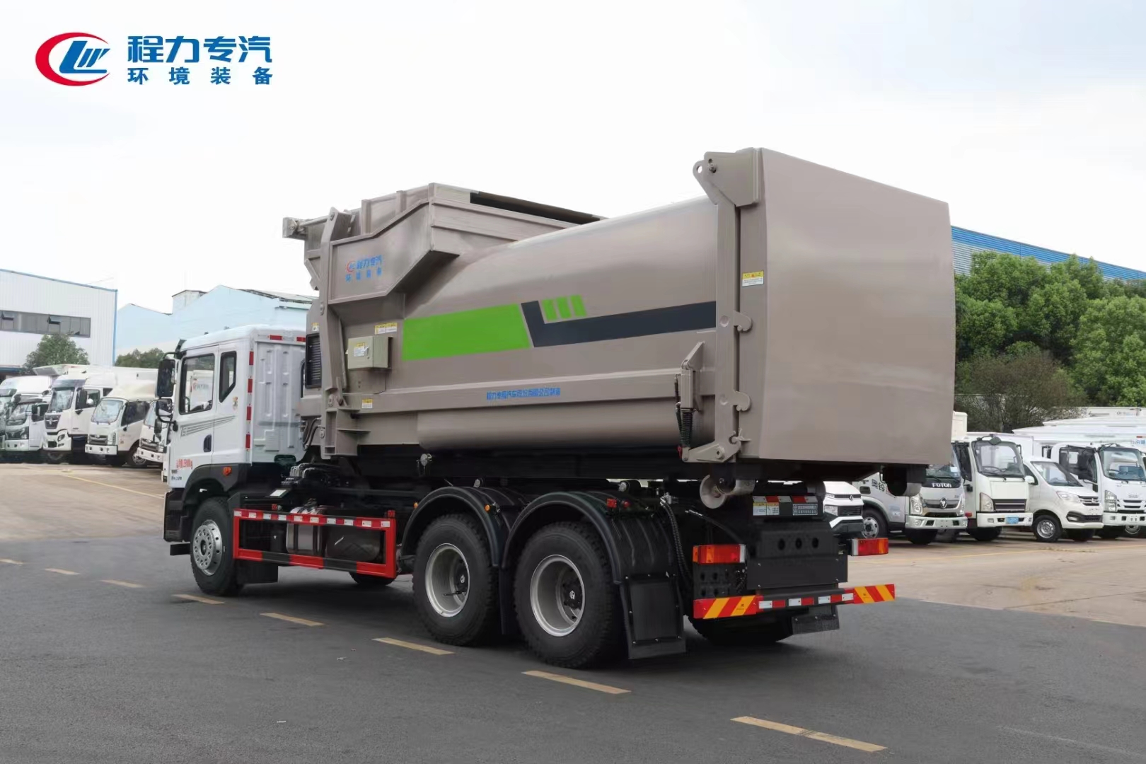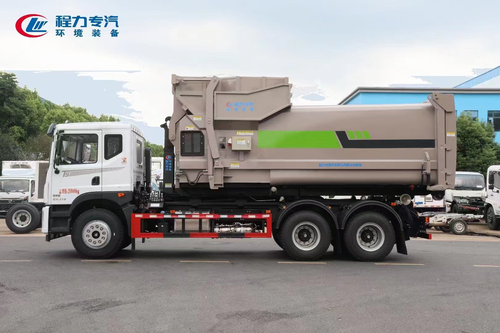??????湖北程力汽車:程力專汽東風(fēng)華神后雙橋勾臂垃圾車+移動(dòng)壓縮箱產(chǎn)品型號及參數(shù)配置,程力專汽東風(fēng)華神后雙橋勾臂垃圾車+移動(dòng)壓縮箱高清圖片,程力汽車系列程力專汽東風(fēng)華神后雙橋勾臂垃圾車+移動(dòng)壓縮箱最新報(bào)價(jià)請撥打客服熱線。車輛主要配置 產(chǎn)品名稱: 程力威牌CLW5253ZXXBHJ車廂可卸式垃圾車 外形尺寸: 828025503170(mm) 排放水平: 國六 貨箱尺寸: (mm) 總質(zhì)量: 25000(Kg) 接近/離去角: 15/19,15/20,15/21() 額定質(zhì)量: 14250,14185(Kg) 前懸后...