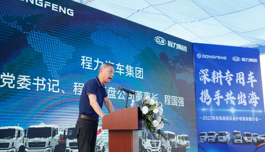 5月27日上午,陽光明媚晴空萬里,在風(fēng)景如畫花園式的程力新廠底盤大樓廣場上,程力汽車集團(tuán)與中國東風(fēng)汽車工業(yè)進(jìn)出口有限公司,聯(lián)袂舉行了一場隆重而又別開生面的“深耕專用車,攜手共出海”商用車新產(chǎn)品大型推薦會。