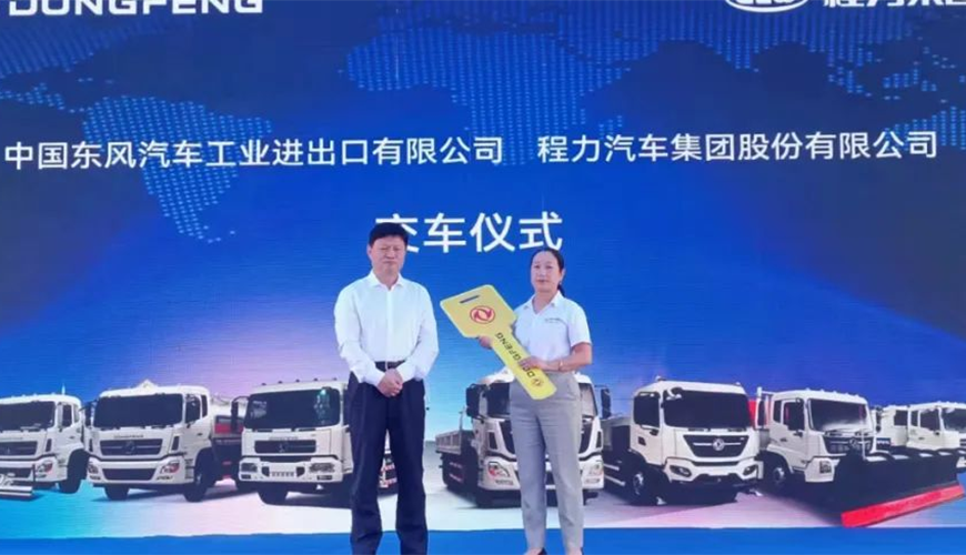 5月27日上午,陽光明媚晴空萬里,在風(fēng)景如畫花園式的程力新廠底盤大樓廣場上,程力汽車集團(tuán)與中國東風(fēng)汽車工業(yè)進(jìn)出口有限公司,聯(lián)袂舉行了一場隆重而又別開生面的“深耕專用車,攜手共出海”商用車新產(chǎn)品大型推薦會。